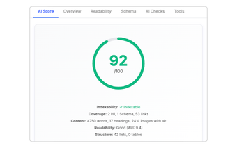 Aaron의 AI 가시성 확장은 SEO 및 AI 가시성에 대한 깊은 통찰력을 제공하기 위해 설계된 무료 Chrome 추가 기능입니다. 사용자가 스키마, 메타 태그, 제목 및 AI 기반 시스템을 위한 콘텐츠 최적화를 분석할 수 있게 해줍니다. 이 확장은 콘텐츠를 0에서 100까지 평가하는 AI 가시성 점수를 제공하여 콘텐츠가 기계가 읽을 수 있고 구조화된 정도에 대한 즉각적인 개요를 제공합니다. 또한 가독성 등급, 수동태 감지 및 콘텐츠 계층 시각화를 위한 도구를 포함하여 사용자가 명확하고 효과적인 콘텐츠를 쉽게 생성할 수 있도록 합니다.